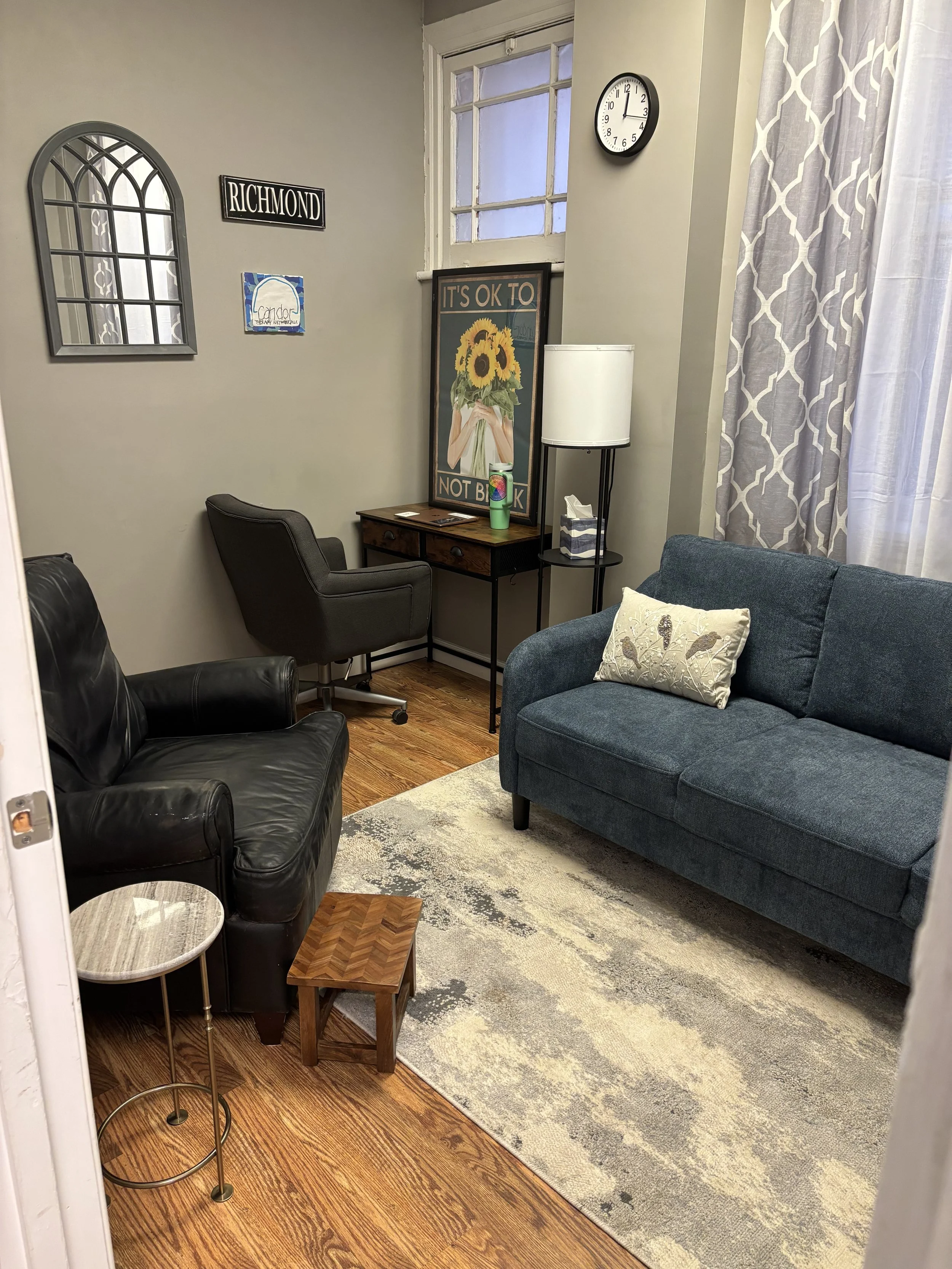 At Candor Therapy Network, we understand that no two journeys are the same. That’s why our therapists tailor every session to your individual needs—whether you’re seeking support for anxiety, depression, relationship issues, or low self-esteem. Conveniently located in the heart of Richmond, our practice specializes in therapy in Richmond VA to ensure you receive expert care close to home.